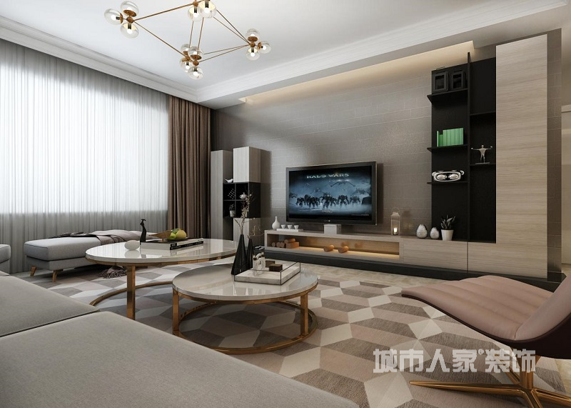 維多利華府140平現(xiàn)代輕奢風格案例客廳